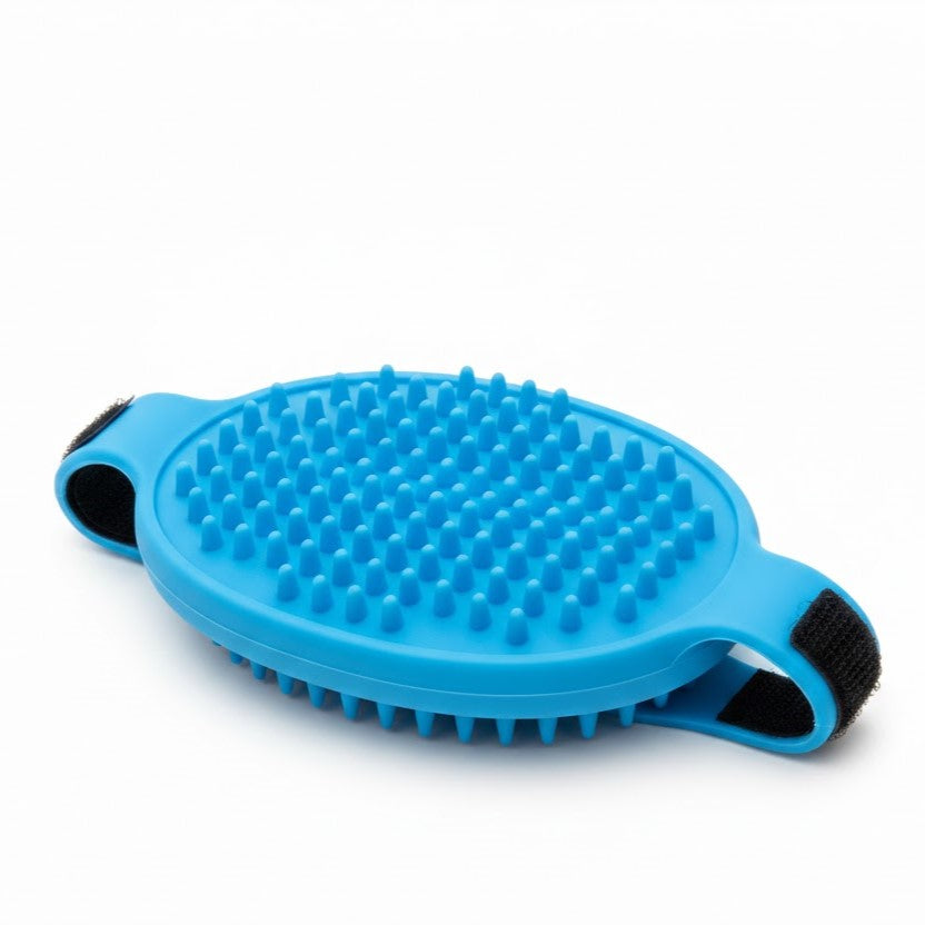 Deze verzorgingsborstel voor huisdieren is ontworpen voor het wassen en masseren van honden en katten. Hij helpt bij het reinigen en verwijderen van haren en biedt een zachte massage. De verstelbare band zorgt voor een stevige grip tijdens gebruik.